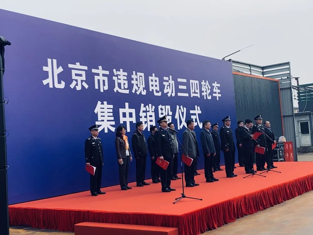 北京1569輛違規(guī)電動三四輪車在華新凱業(yè)現(xiàn)場被集中銷毀!